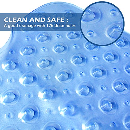 Wimaha Bathtub Mats Non-Slip Mildew Resistant Anti-Bacterial Extra Long Pebbled Shower Mat Blue 38L x 16W