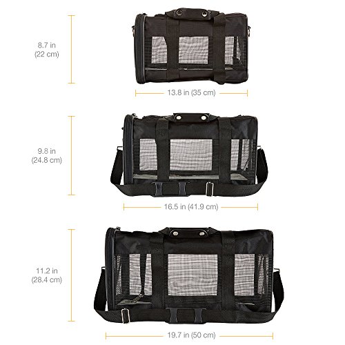 Large soft-sided carrier measures approximately 19.7x10.2x11.2 inches (LxWxH)