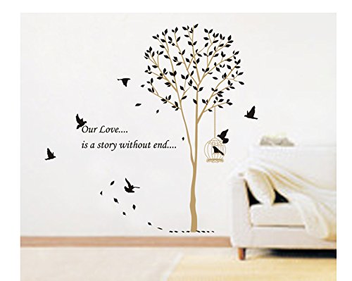 - Title : E-Love Hot Sale Our Love is A Story Without End Quote Tall Tree with Birds Wall Decal Leaves Wall Sticker Decor Removable Mural