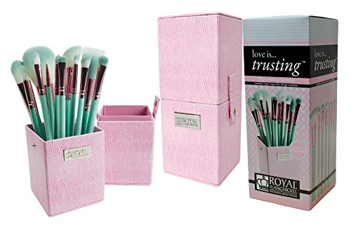12 Piece brush kit includes: Powder, Stippler, Foundation, Contour, Concealer, Angle Shader, Crease, Smudger, Line and Smudge, Flat Smudger, Angle Brow, Storage Box.