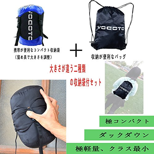 YOGOTO 초 콤팩트 경량 봉투형 춘용하용추용 슈라후 침낭 고급 다운 통째로 세탁 할 수 있는 수납 대부 캠프 아웃도어 발수 가공 차 안박 오토바이 투어링(touring) 방재