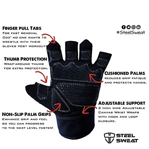 -. Feature : WHAT SIZE DO I GET? Check our sizing chart in the pictures to see how to measure your hand to get the best fit for you. / ENHANCED VENTILATION AND COMFORT: Weight lifting gloves with integrated wrist support and CoolWeave technology on the back of the hand to enhance ventilation, comfort and provide a superior fit. / EASY TO GET ON AND OFF: Use the helpful pull tabs on the fingers and thumbs because no one likes to wrestle with their gloves pre or post workout / BREATHABLE: Allows your sweat to evaporate and your hands to stay dry while you exercise. / PROTECT YOUR HANDS and say goodbye to blisters and calluses. Click the Add to Cart Button now, your hands will thank you