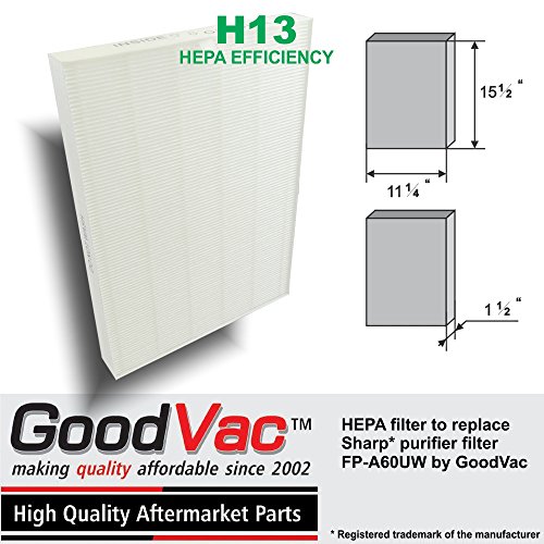 Sharp Plasmacluster FP-A60UW Ion Air Purifier Replacement HEPA Filter by GoodVac