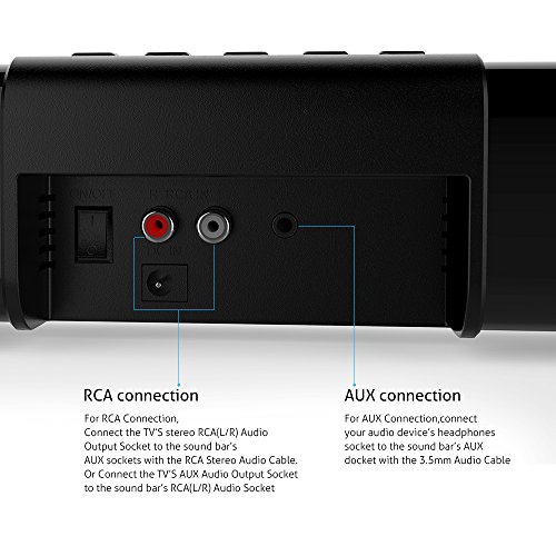TV Sound Bar, Meidong Bluetooth Soundbar with Built-in Subwoofer, 36 inch 2.0 Channel Home Theater Speakers, Wireless and Wired Bluetooth Audio for TV/PC/ Phones/Tablets/ Echo dot (2017 Model)
