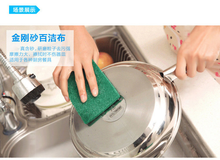 厨房加厚超强清洁洗碗布小腰形金刚砂百洁布刷锅强力去污擦海绵擦