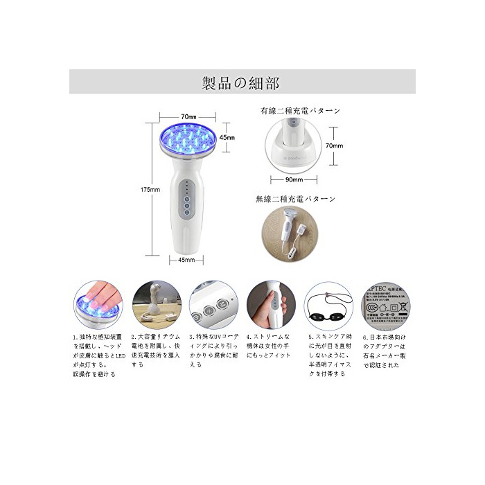 원본상품명: La goodwind PH-1 フォトンライトセラピフェイシャル美顔器ニキビ跡淡化ニキビ跡肌の若返り家庭用LEDスキンケ機 器