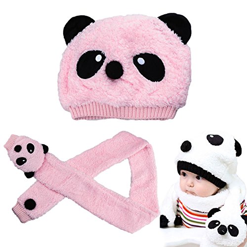 AStorePlus Kids Hat Scarf Set, Baby Cute Panda Pattern Winter Warm Knitted Fleece Earflap Hat A...