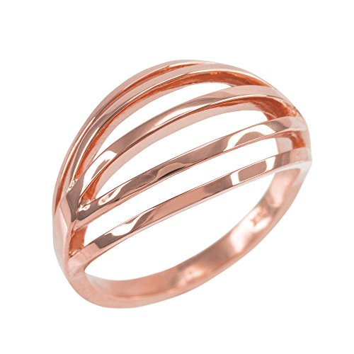 -. Title : Solid 10k Rose Gold Open Design Ribbed Ring