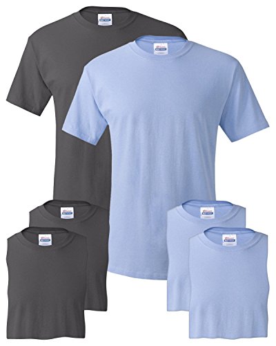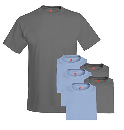 Hanes Men's 6-Pack Crew T-Shirt, 3 Smoke Gray / 3 Light Blue, Large