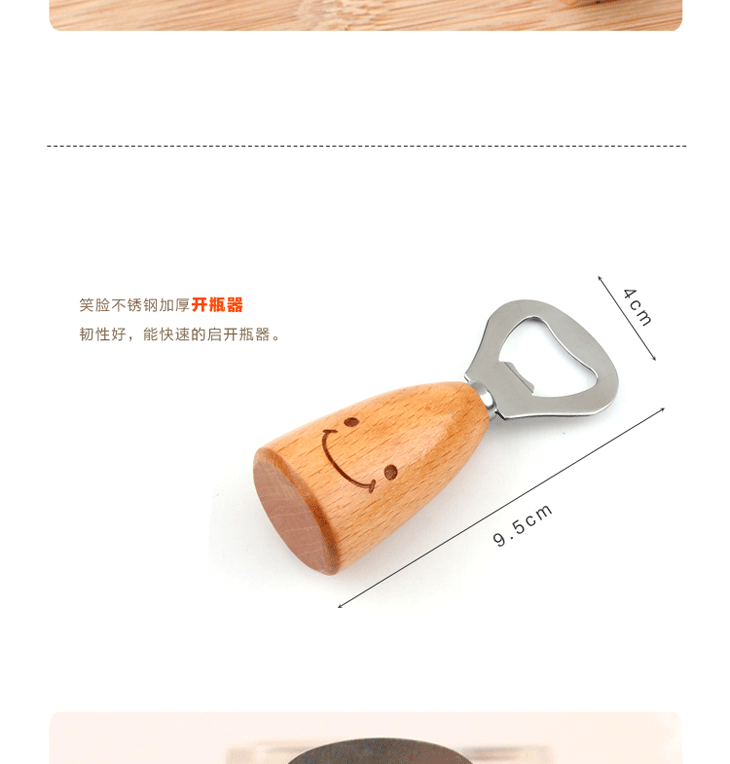 | Product Description | Japan and South Korea popular models wooden handle opener, superb technology, excellent quality! Based on ergonomic design principles, people-oriented, stretch free and enjoy the easy to use. Selection of high quality stainless steel, with Sekisawa, toughness, easy to open, easy to fall. Birch handle full round, more solid, durable, easily, smoothly pry opener, bottom force area increases, can stand upright, easily accessible. |