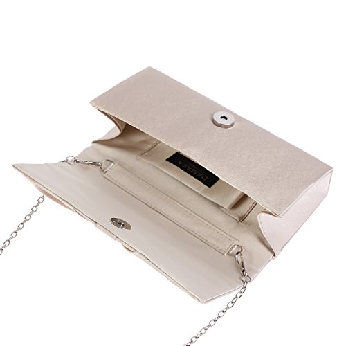 Product Description A dainty and delicate evening bag makes you the focus of people! Covered with a layer of soft satin. The front is in pintuck design. The flap is fastened with magnetic snap. The capacity is enough for you to carry coin purse, phone or your lipstick. Inside is equipped a small pouch to hold tiny things like key. This bag can be clutched by hands or cross the body with detachable chain. Bag measurement approximately: length 20cm (7.8 inches); width 5cm (1.9 inches); height 9cm (3.5 inches); shoulder strap 120cm (46.8 inches). 0