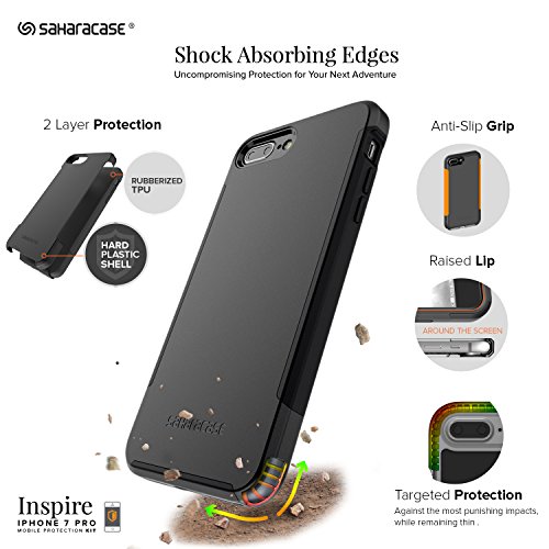 -. Binding : Wireless Phone Accessory -. Color : Black -. Feature : SaharaCase Inspire Protection Kit fits iPhone 7 Plus. Dual-Layer design provides extra protection from impacts, drops, and scratches / A ZeroDamage Tempered Glass Screen Protector is included with every kit, providing the best screen protection / Built-in camera hood protects the iPhone 7 Plus lens against damage and scratches / Ergonomically designed case uses the highest quality rubberized and plastic materials, allowing easy access to buttons and ports / Designed by veteran phone repair engineers, SaharaCase Protective Kit Includes a case, tempered glass screen with alignment tool, alcohol prep pad, microfiber cloth, dust removal tool, and squeegee -. Label : Sahara Case -. Manufacturer : Sahara Case -. PackageQuantity : 1 -. ProductGroup : Wireless -. ProductTypeName : WIRELESS_ACCESSORY -. Publisher : Sahara Case -. Studio : Sahara Case -. Title : iPhone 7 Plus Case, Black SaharaCase® Inspire Protective Kit Bundle with [ZeroDamage® Tempered Glass Screen Protector] Red Protection Anti-Slip Grip [Shockproof Bumper] Slim Fit (Black)
