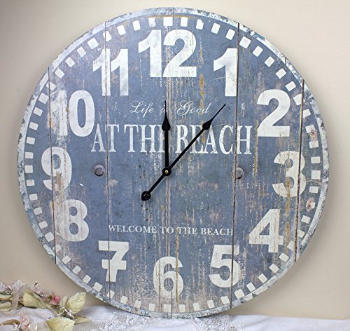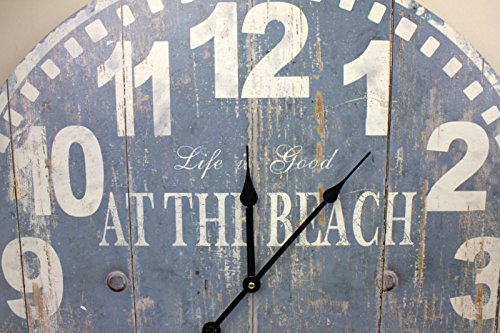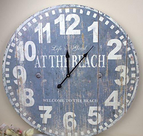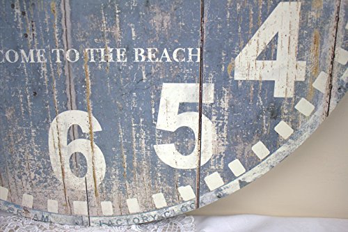 -. Title : 23" Large "At the Beach" Blue Wall Clock Wooden