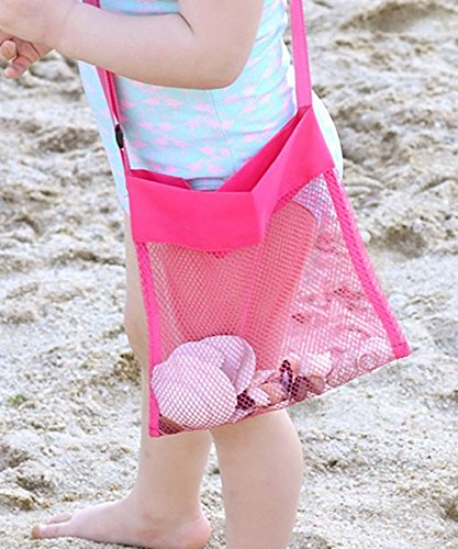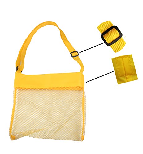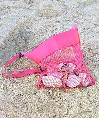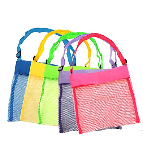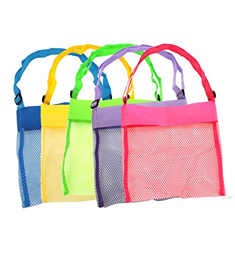 Violet Mist Mesh Beach Bag Colorful 9 x 9inch Seashell Treasure Bag with Adjustable Shoulder Strap for Shell Collection, Set of 5