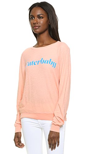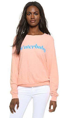 A slouchy Wildfox top detailed with 'Waterbaby' lettering at the front. Soft jersey backing lends a cozy touch. Banded edges. Long sleeves.