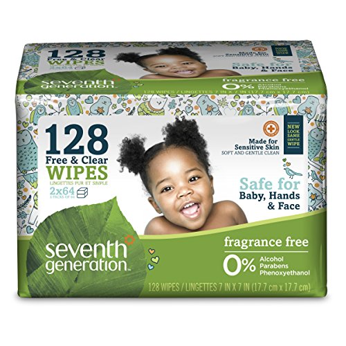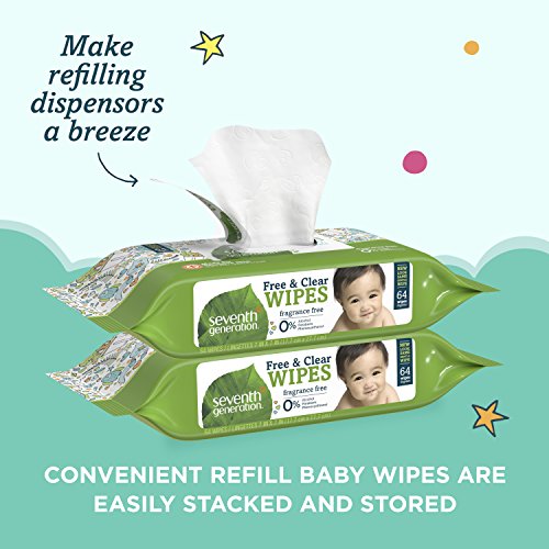 Seventh Generation Thick & Strong Free and Clear Baby Wipes Refill Pack, 128 Count (Packaging May Vary)