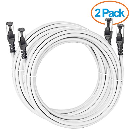 Aurum Cables High Performance Cat6a Snagless Shielded SSTP/SFTP Ethernet Patch Cable - 2 Pack - White - 8 Feet