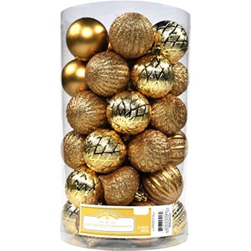 Holiday Time Christmas Holiday Party Shatterproof Ornaments Seasonal Decorations 60mm/2.36", 41ct. Gold