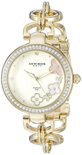 -. Title : Akribos XXIV Women's AK874YG Round Cream Mother of Pearl Dial Three Hand Quartz Gold Tone Strap Watch
