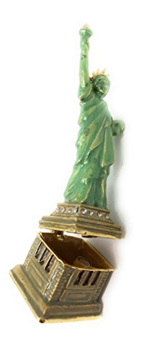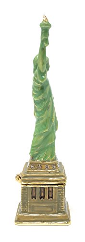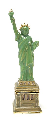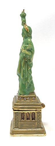 Enameled Statue of Liberty Trinket Box by Kubla Craft, Accented with Austrian Crystals, 4T