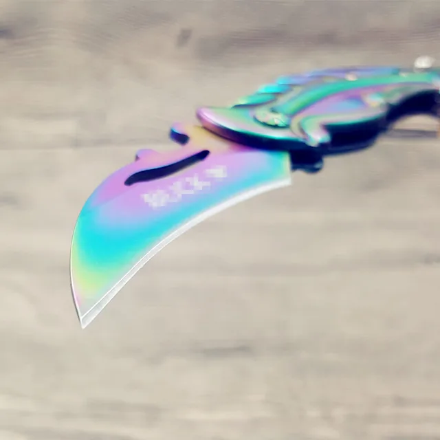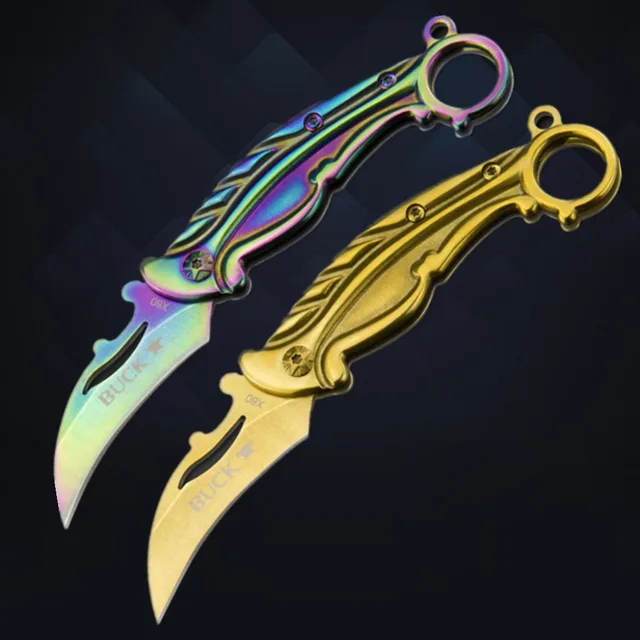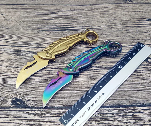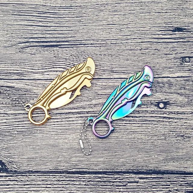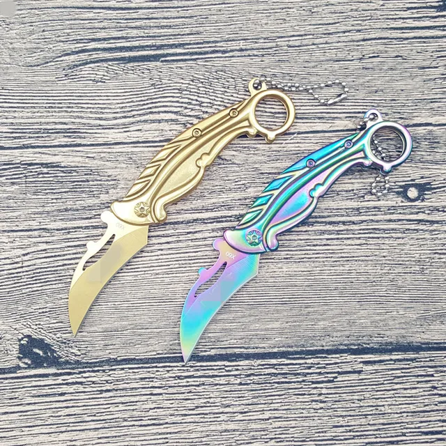 Fullxeon 무지개 골드 새 포켓 나이프 미니 야외 캠핑 사냥 접는 나이프 다채로운 생존 전술 도구