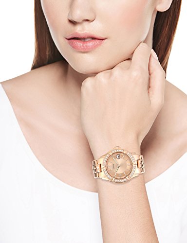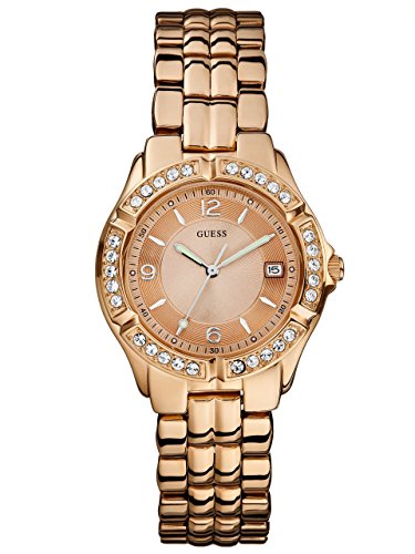Product DescriptionDefine Your Time with this GUESS Dazzling Sporty Mid-Size Rose Gold-Tone Watch with Date0