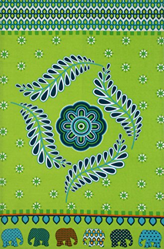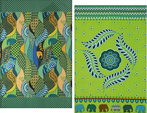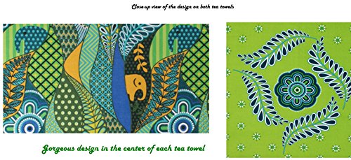 Green Kitchen Tea Towels with Elephant Design, Set of 2 Decorative Cotton Dish Towels