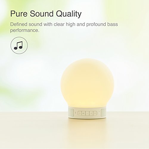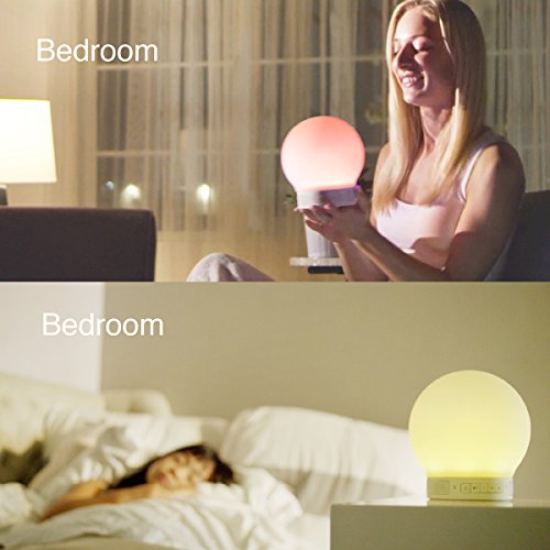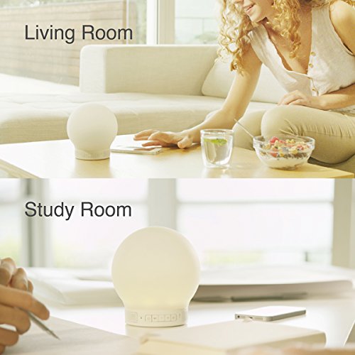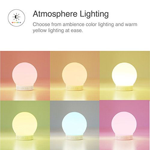 [All-in-one design]: Great combination of Bluetooth speaker, tap responsive/button-press/App control multi-color silicone LED round lamp, and micro-speakerphone, with built-in battery and portable design.