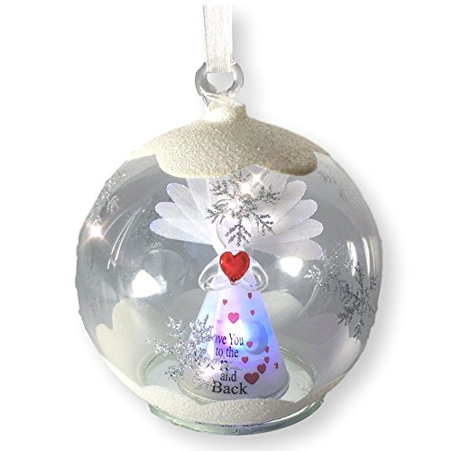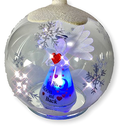 Love You to the Moon and Back Ornaments - LED Lighted Glass Christmas Ornament - Light Up Globe with I Love You To The Moon and Back Angel Inside