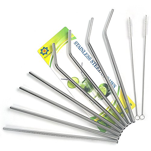 - ✔ COMES IN A LARGE PACK OF 8. It comes with 4 straight straws, and 4 curved straws, plus 2 cleaning brushes. The cleaning brush fits perfectly inside the straw for thorough cleaning after use. Great choice for environmentalists!