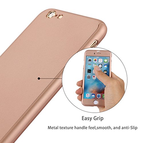 iPhone 6 Case, Coocolor Ultra Thin Full Body Coverage Protection Hard Slim iPhone 6 Case with Tempered Glass Screen Protector for Apple iPhone 6 4.7(Rose red)