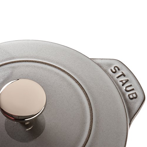 Staub's 1.5 quart Cast Iron Petite French Oven boasts the benefits of a full-size cocotte in a compact size. Get fluffy rice, tender grains and creamy oatmeal thanks to Staub's signature new lid. Staub's latest innovation, the Chistera drop-structure lid, has solved the challenge of curved lids—they limit moisture to sides—by ensuring continuous condensation throughout. Unlike countertop rice cookers, Staub's Petite French Oven can be transported from the stovetop to the table. No need for serving bowls; these charming cocottes take care of both cooking and plating. Rice has never been so easy to make.Feature