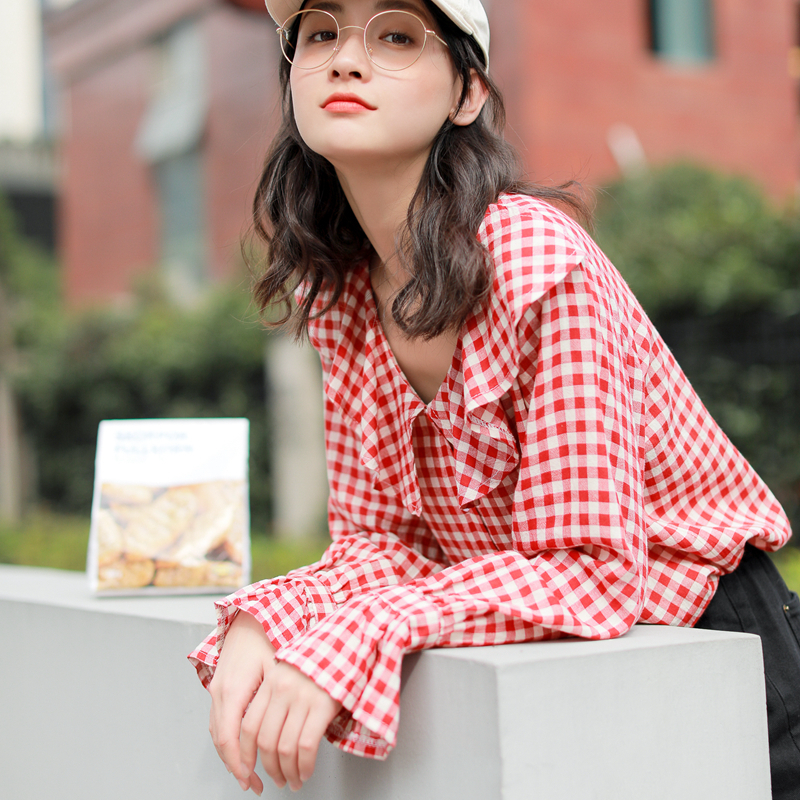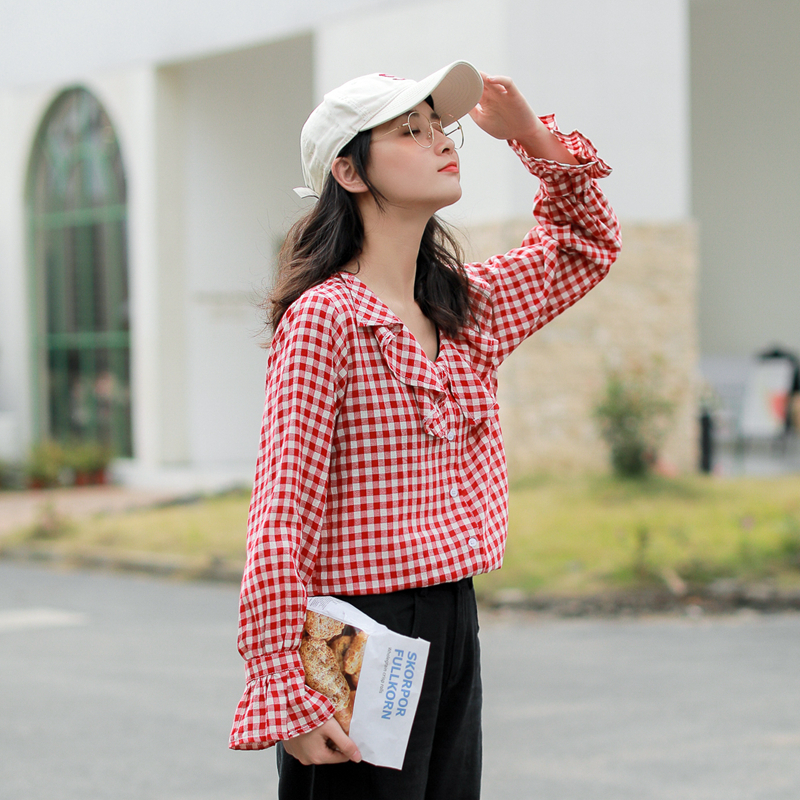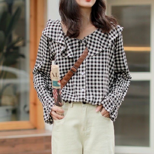 襟ぐりが大きく開き、デコルテラインをきれいに見せてくれるカジュアルなブラウス。