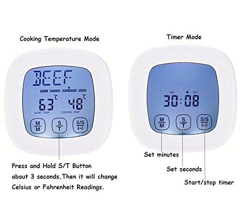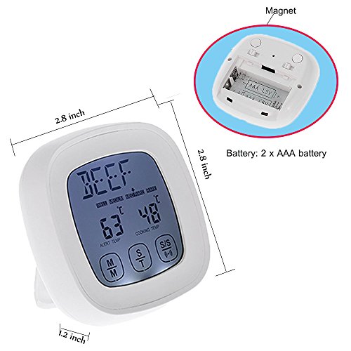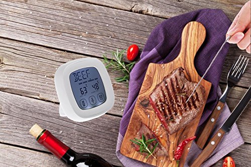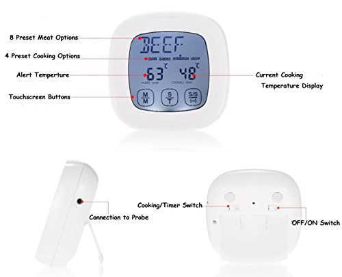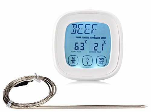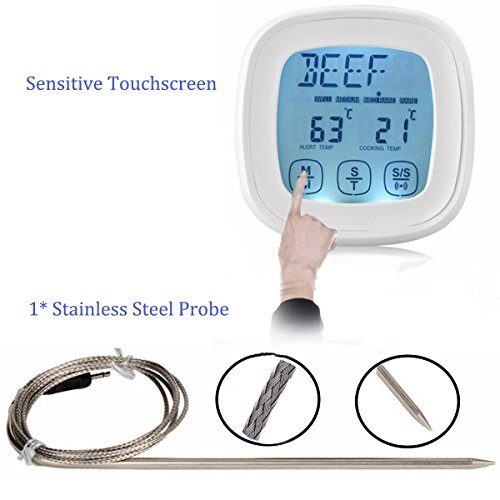 Etybetopstar Touchscreen Digital Food Meat Thermometer with Stainless Steel Probe Built-In Clock Timer Cooking Thermometer for Kitchen,BBQ Grill,Food,Meat(White)