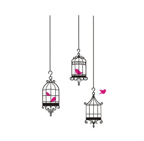 -. Title : Createforlife Home Decoration Vinyl Wall Sticker Decals Mural Art Rose Red Birds in Cage Black