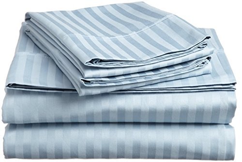 Deluxe 4pc Striped FULL Bed Sheets Set, Light BLUE