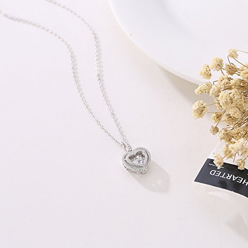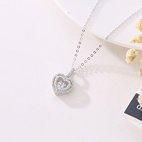 -. Feature : Love Heart Dancing Stone Necklace Is A Great gifts for lover, wife, girlfriend, mother, friends. Well celebration presents on wedding anniversary, birthday, Valentine's Day or Christmas / 100% 925 Sterling Silver,AAA Clear Cubic Zircon,swarovski element / Dancing Diamond Loving Heart Pendnat Size:11*19mm / Nickel-free, Lead-free, Cadmium-free and Hypoallergenic, Long Time Wearing Keeps You a Good Health / Elegant Clear Round CZ Inlaid. Perfectly Suit to Women, Great Gift to The One You Love