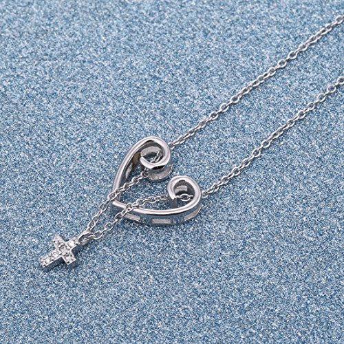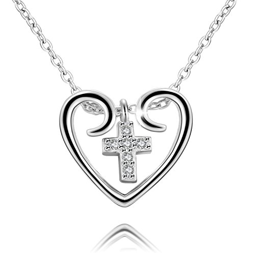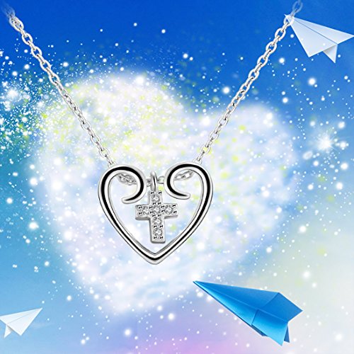 -. Title : JUFU Women's Valentine's Day Gift S925 Sterling Silver Dancing Stone Love Cross Necklace 18"