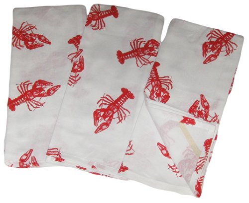 -. Feature : Red Lobsters on White Kitchen Dish Towels Set of 3 Cotton / 100% cotton flat weave tea towels / Hemmed edges / 19x29 inches each / Machine washable