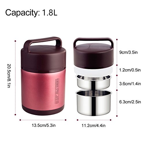 Insulated Lunch Box Stainless Steel Vacuum Bentos / Food Carrier /Food Container / Taffin Lunch Box Containers Portion Control Containers - Hold Warm for 5 Hours,1.8L, Red