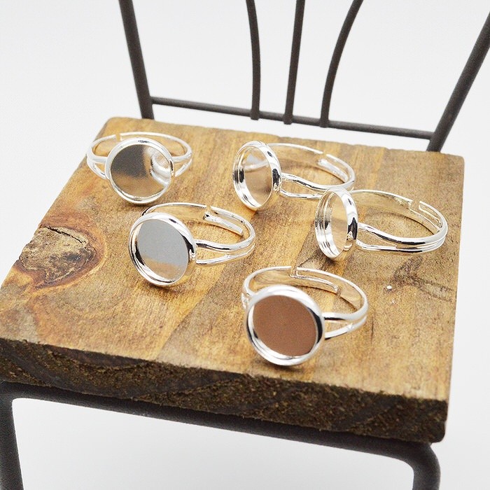 ■生産国:中国丸皿付きリング パーツ シルバー リング台座 セッティング ミール皿 金具 指輪土台 リメイク パーツ アクセサリー リングパーツ 手作り ハンドメイド UVレジン 手芸 レジン 指輪 リング フリーサイズ 皿付きリング シルバー 5個セット 皿付きリング シルバー 5個セット 丸皿付きリングで自分のリングを
