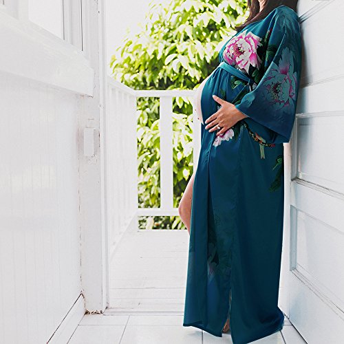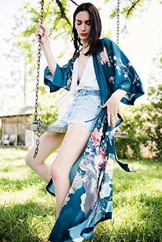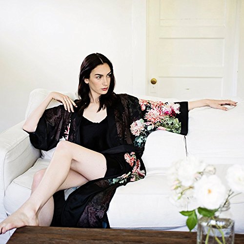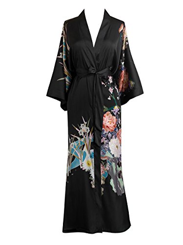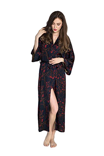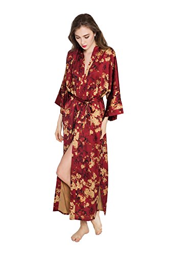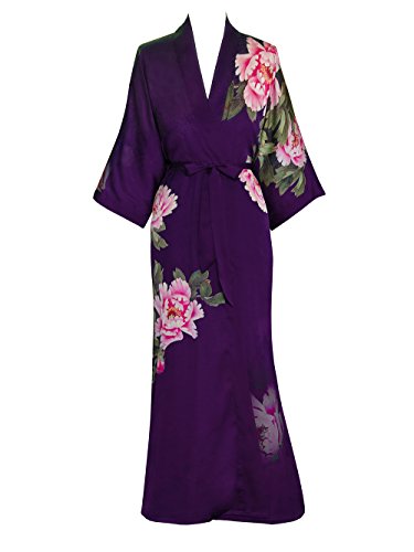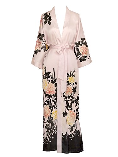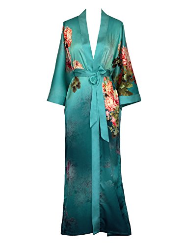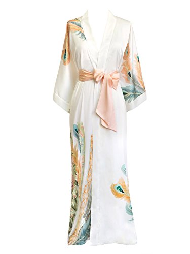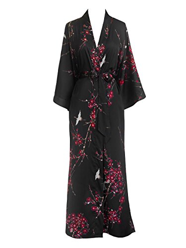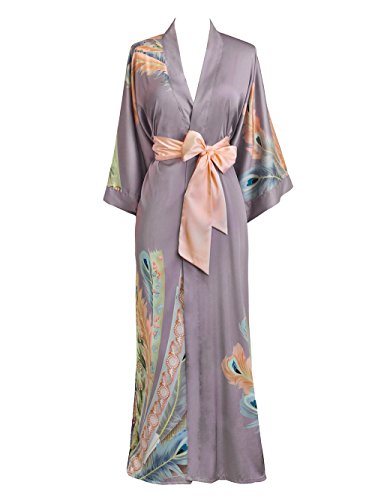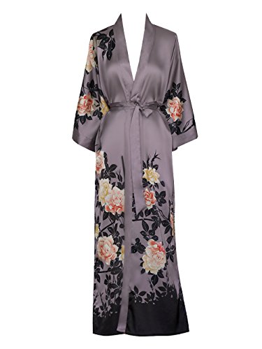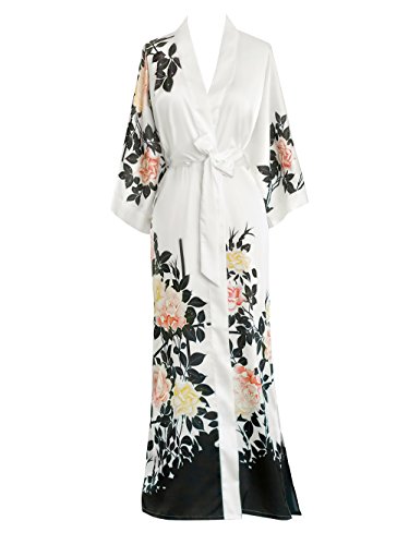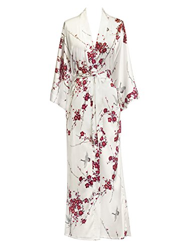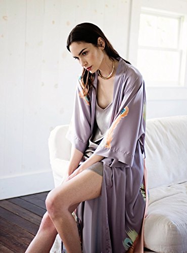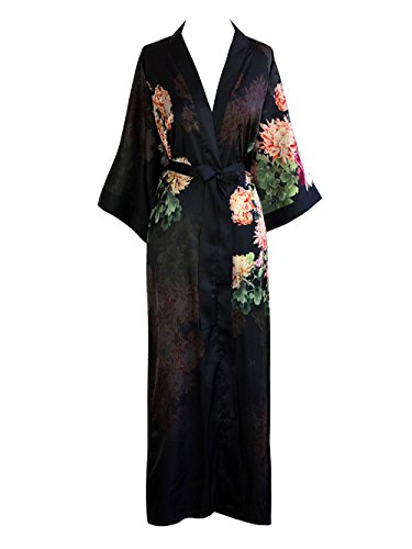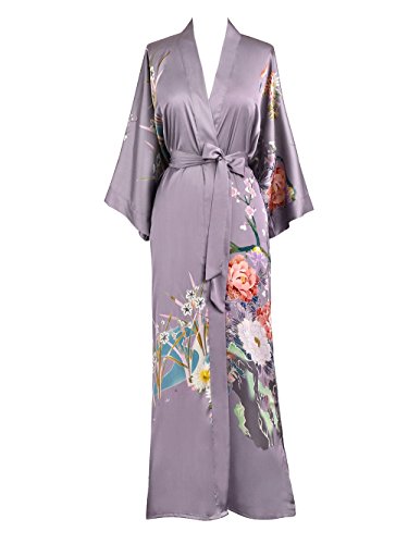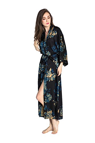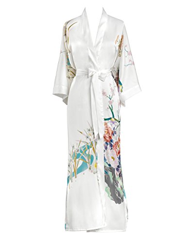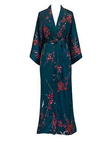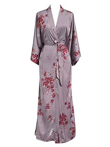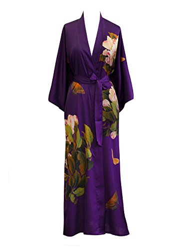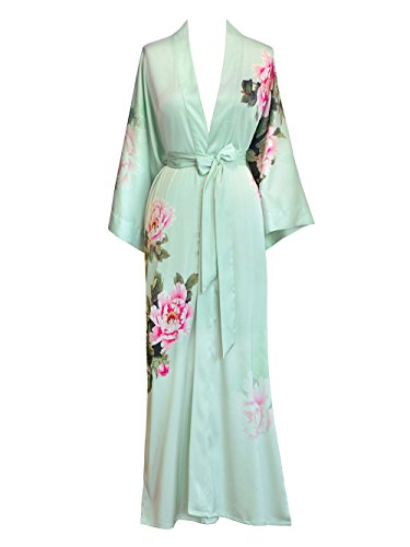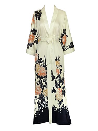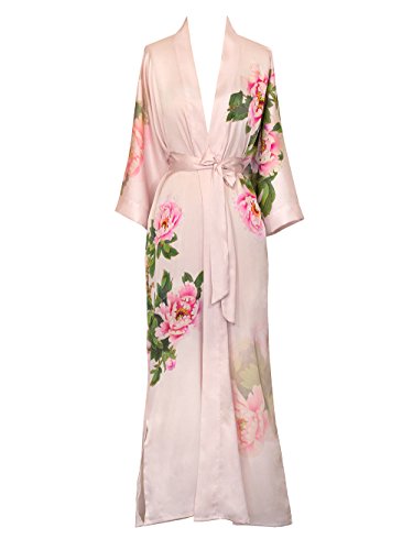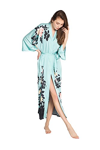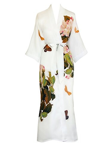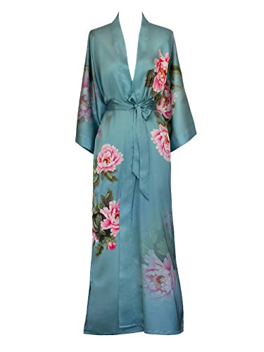 | Old Shanghai Women's Kimono Robe Long - Watercolor Floral |