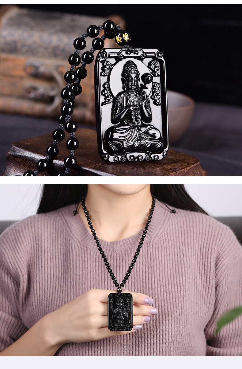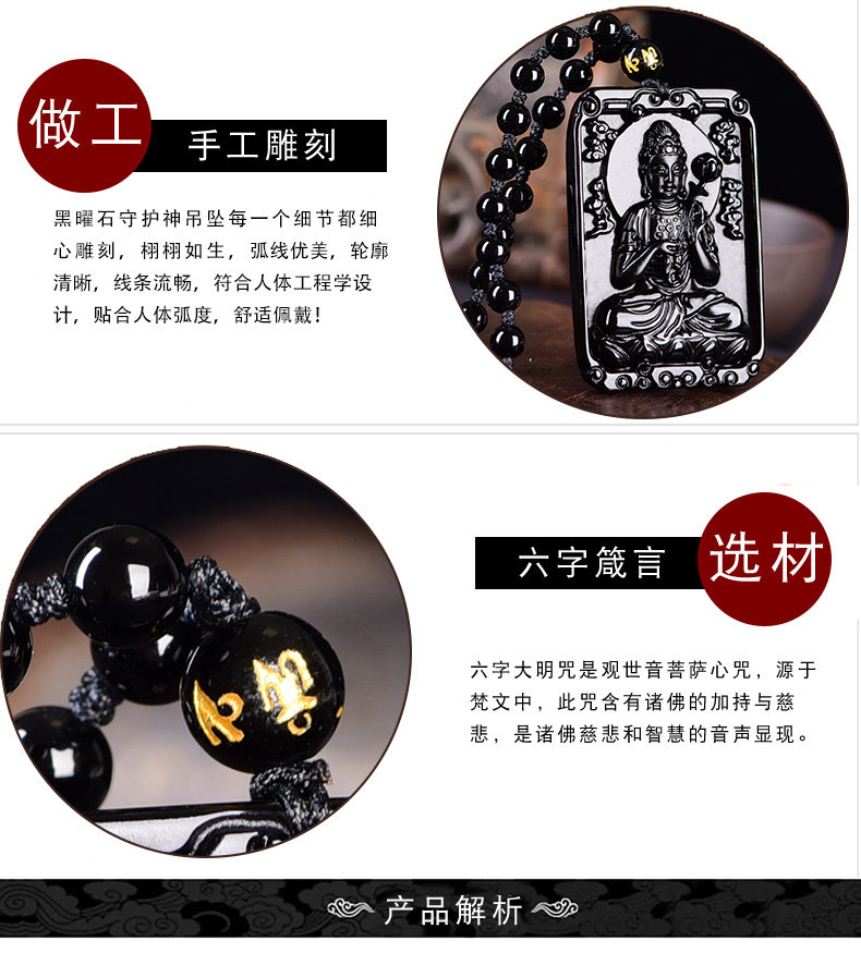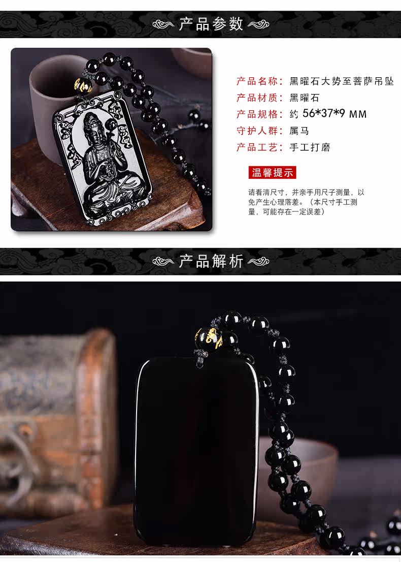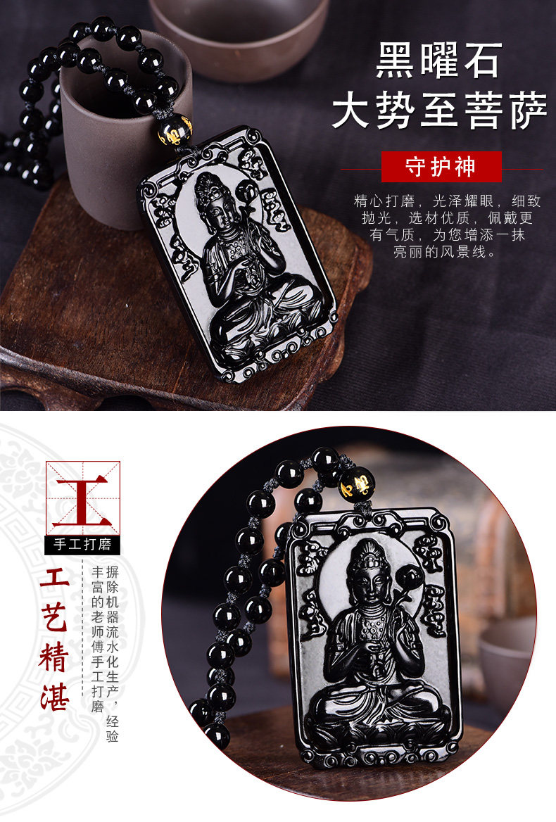 黑曜石生肖本命佛属马守护神吊坠大势至菩萨平安项坠