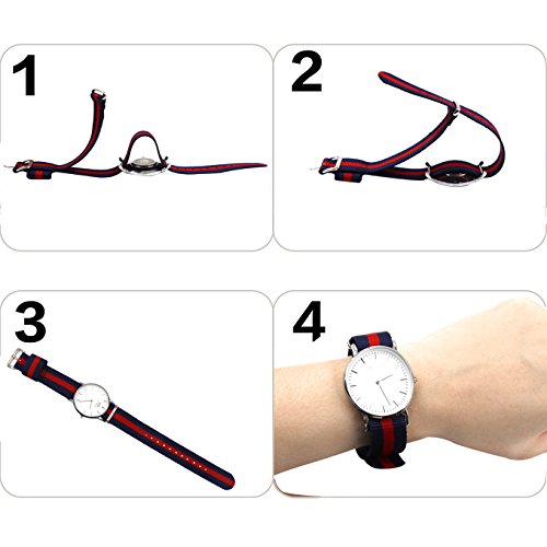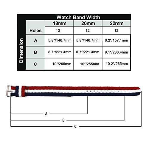 -. Feature : 4PC nato watch band(Navy Blue /Red,Navy Blue /White/Red,Black, Army Green) / Easily Interchangeable Replacement Watch Strap / fit for 20mm lug width watch band / 100% stainless Steel hardware / Width:20mm , Length:about 260mm