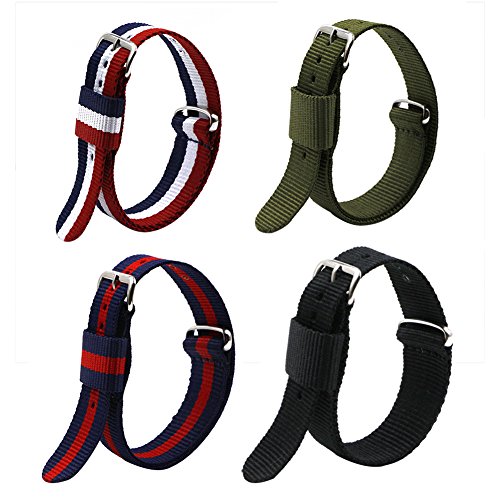 -. Title : 4pc Ritche 20mm Nylon Striped Blue /Red,blue /White/red,black, Army Green Replacement Watch Strap Band