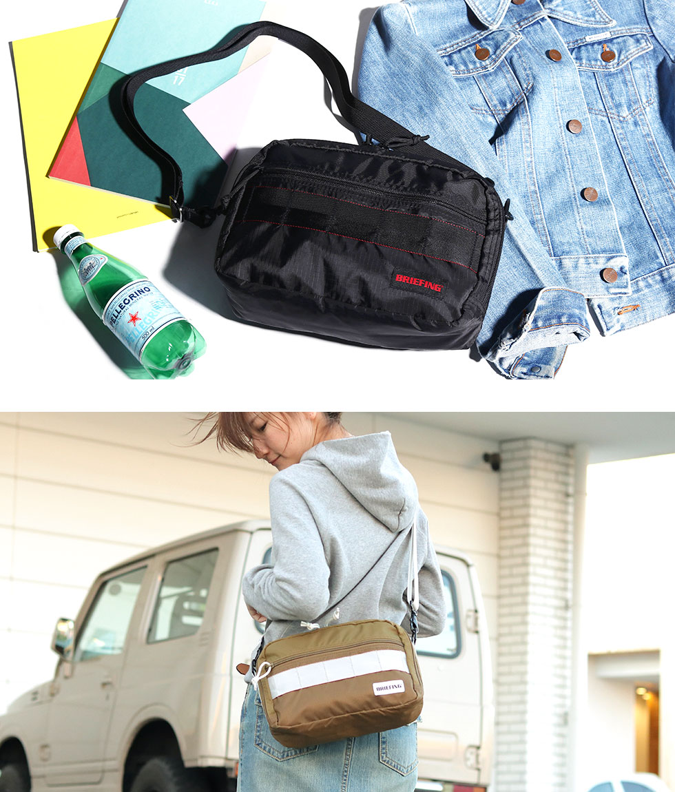 BRIEFINGの機能性を継承しつつ、女性がデイリーで使い易いようデザインされたショルダーバッグ。コーディネートのアクセントにもなるお洒落なデザインながら、軽量で収納力にも優れた作りになっています。ストラップを外してハンドルで手持ちをしてもお使いいただけます。