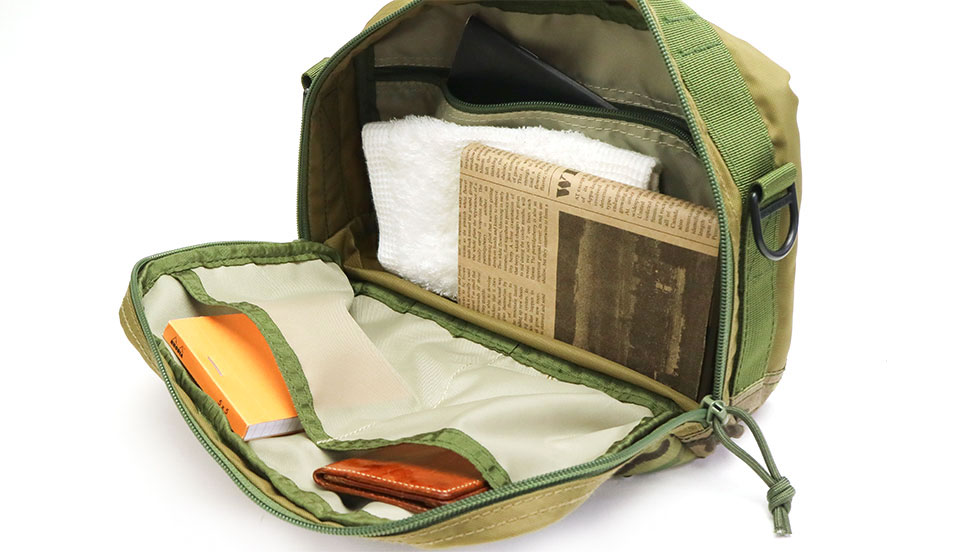 メインルームはコンパクトな見た目ながら、荷物を沢山詰め込める作りになっています。バッグ自体が軽量なので、荷物が増えてしまっても重さを感じにくくなっています。