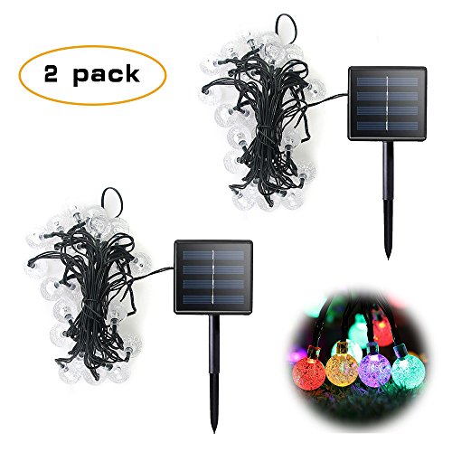 ENERMALL 2 Pack Solar String Lights, 20Ft 30 LED Globe Lights for Outdoor, Garden, Lawn, Wedding, Patio, Halloween Party and Holiday Decorations (Multi Color)