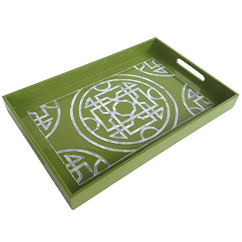 A&B Home KIH39194-GREE Mother Of Pearl Inlay Lacquered Tray