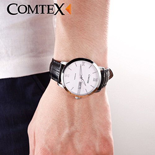 Comtex 손목시계 자동 감기/태엽 기계식 시계 날짜 요일 메카니칼 아날로그 손목시계 맨즈화이트